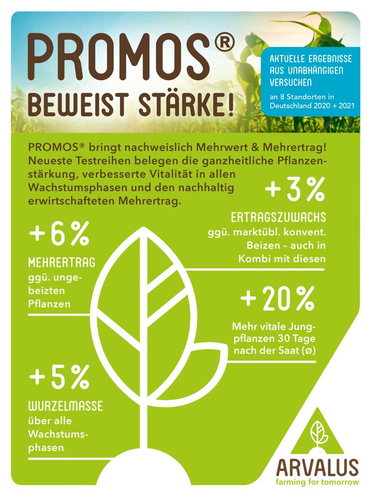 PROMOS® fördert die allgemeine Gesunderhaltung und Vitalität insbesondere von jungen Mais Pflanzen. Extrakte aus mehrjährigen heimischen Pflanzen helfen den Stress in der Jugendentwicklung besser zu überwinden.
